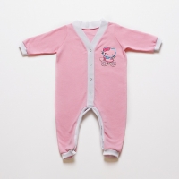 Комбинезон удлиненный, без следа, с длинным втачным рукавом, с эластичными манжетами по низу рукава и ножек. По полочке-застежка-кнопка от горловины до ластовицы и по шаговому шву.