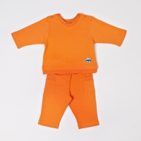 Джемпер прямого силуэта с декоративной планкой внизу изделия и нашивками на полочке; рукав длинный, с декором посередине. Брюки длинные с манжетом по низу, эластичной тесьмой на талии, двумя боковыми накладными карманами.
