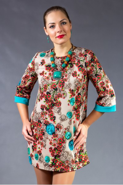 Эффектное платье-туника слегка расклешенного силуэта. Выполнено в привлекательном дизайне. Придаст вашему образу загадачность и неповторимость.