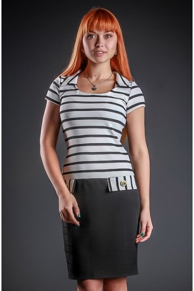 Очень эффектная модель за счет черно-белых полос. Верхняя часть изделия в полоску. Юбка и спинка платья в черном цвете, что несомненно стройнит Вашу фигуру.