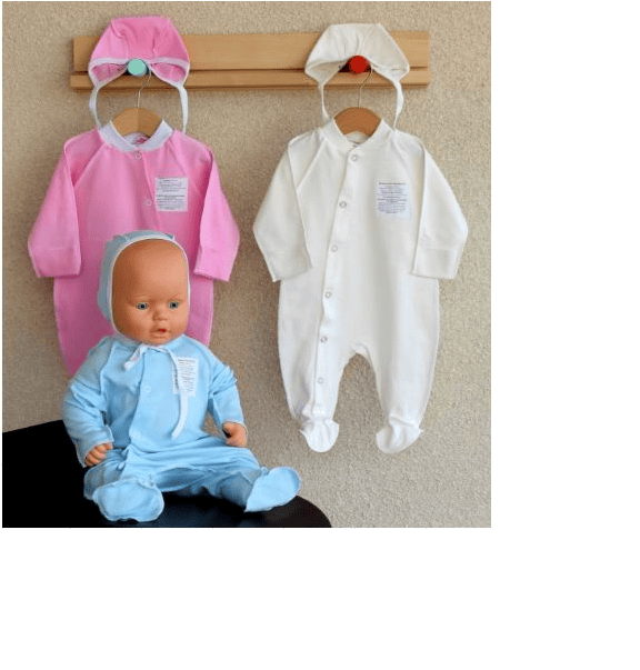 Описание модели: Комплект состоит комбинезона на кнопках (расположены по боковой части комбинезона) и чепчика.