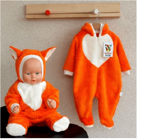 Описание модели: Комбинезон для новорожденного Лисички с ушками и пузиком на молнии. 74-80 штанишки на манжетах без лапок.
