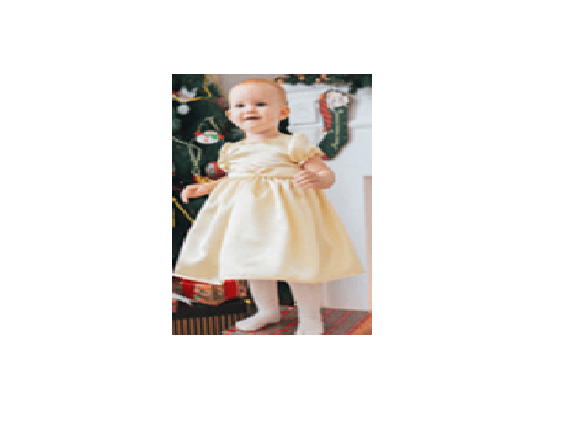 Платье из креп-сатина на подкладе из хлопка. По низу юбки для пышности настрочен заложеный в складку фатин. Фасон платья-отрезное, присборенное по линии талии. Впереди лиф украшен драпированным поясом с нашивными жемчужинами, сзади завязывающимся поясом регулирующим прилегание по фигуре. Рукав короткий присборенный по низу и в верхней части на резинку. Низ платья отделан контрасной косой бейкой гормонирующей с тканью платья.