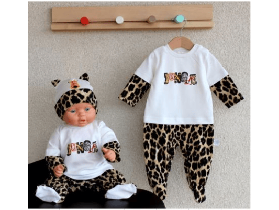 Описание модели: Комбинезон прошит из интерлока и украшен аппликацией на груди. Кнопки по шаговому и плечу.