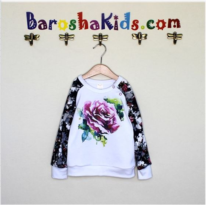 Описание модели: Джемпер из интерлока с принтом. Кнопки по плечу.