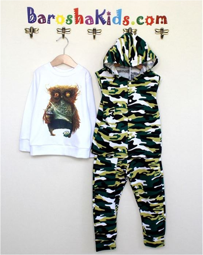 Описание модели: Комплект состоит из толстовки, жилета и штанишек, украшен принтом.
